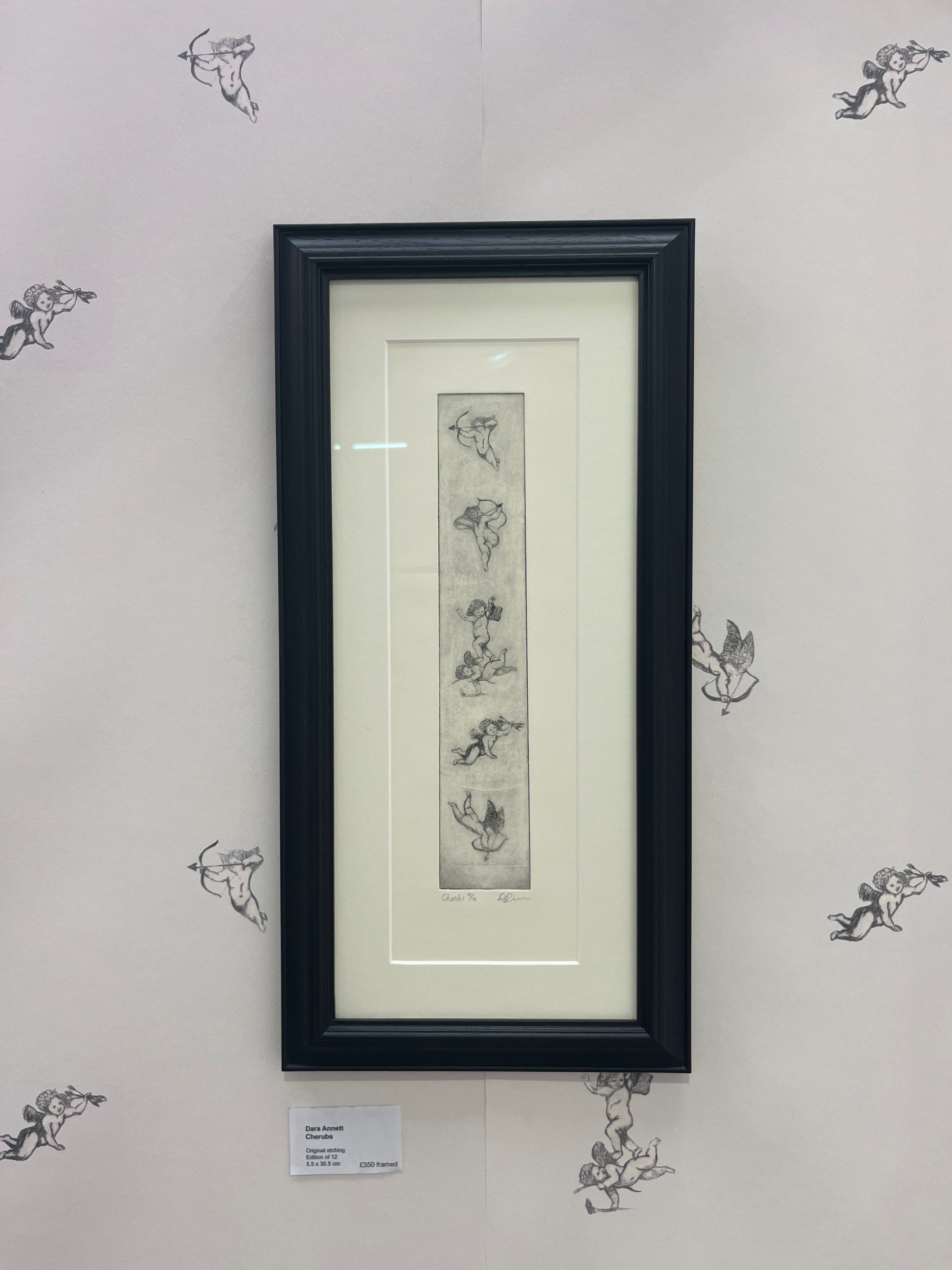 Bespoke hand-painted wooden frame with UV 70% anti reflective glass.