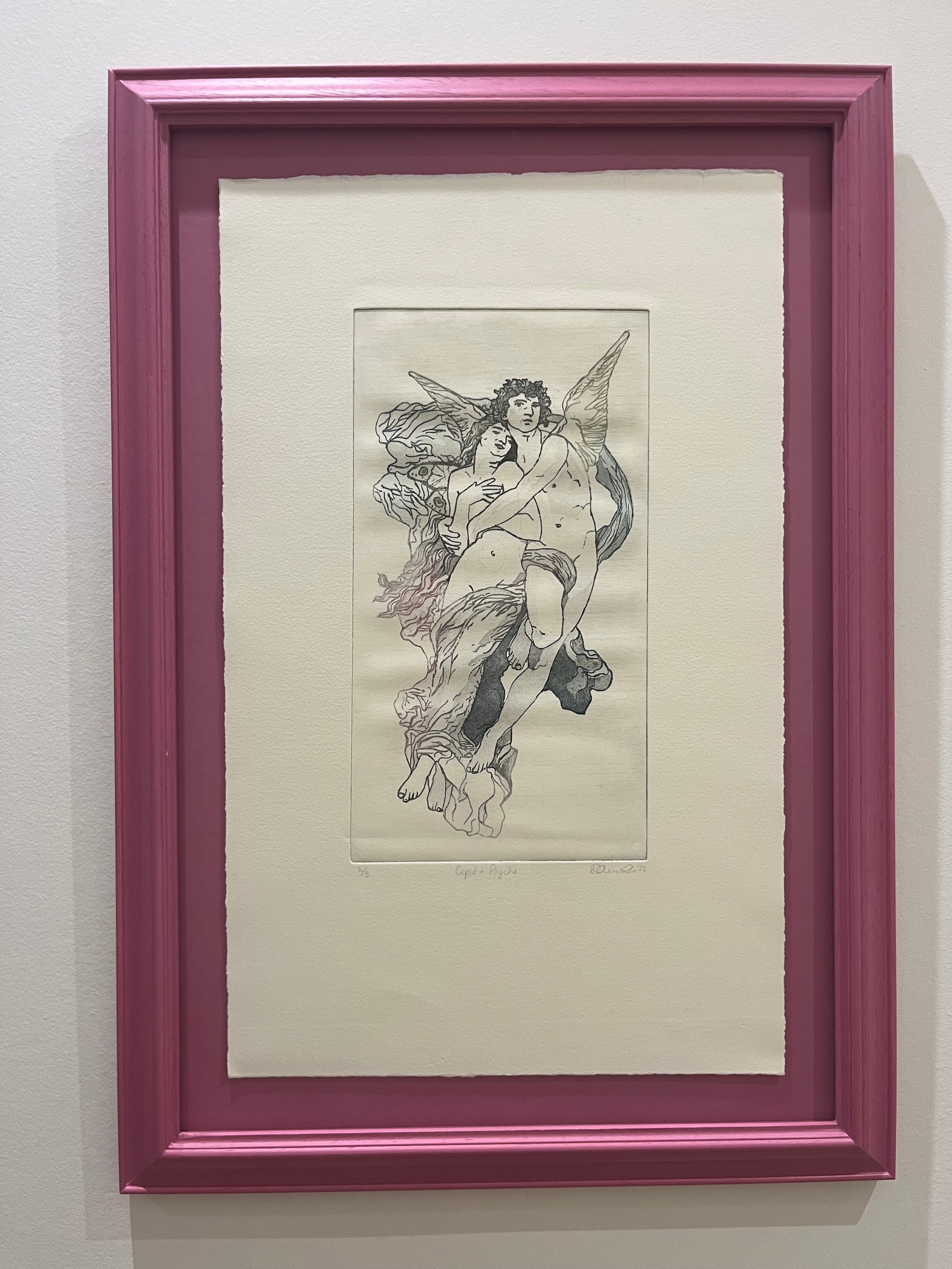 Pink frame is bespoke hand-painted wooden frame and board with UV 70% anti reflective glass.